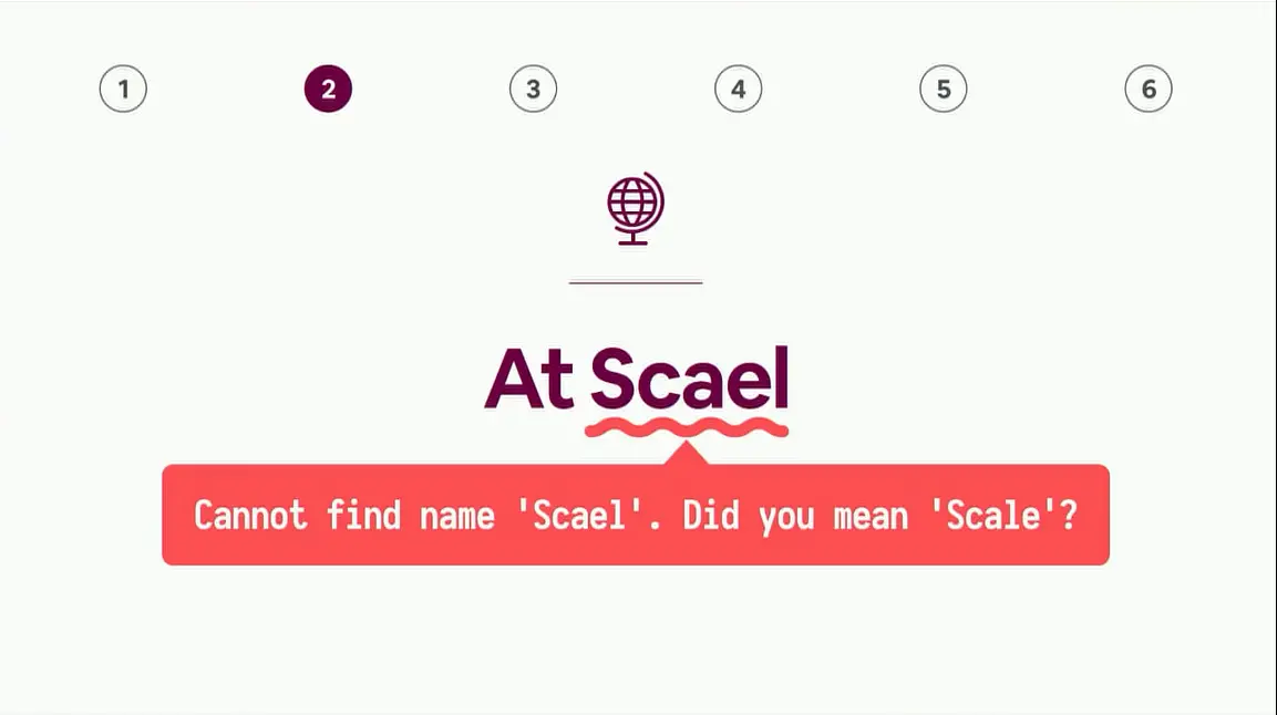 如果你一时疏忽,输入了一个错误的变量,那你将会得到这样的一个错误提示,so,在 TypeScript 中真的会发生这样的事。 所以,让我们来修复下。