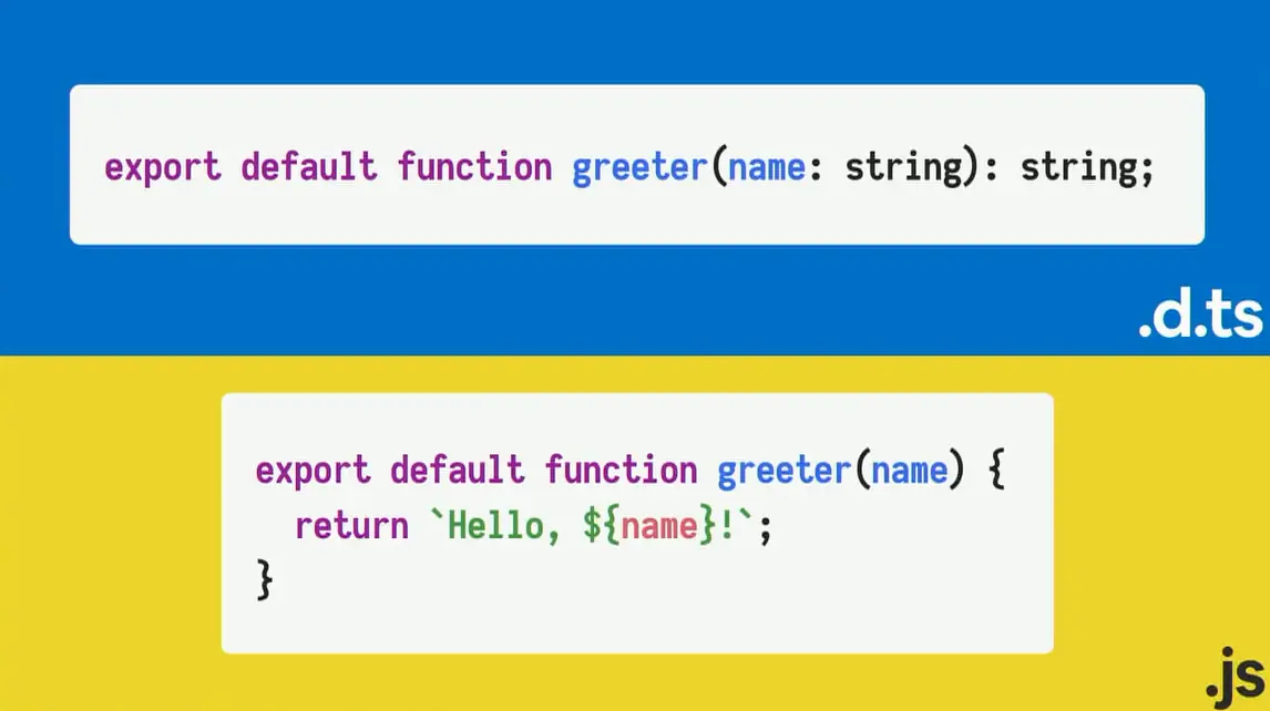 TypeScript将它们组合到一起,这样,在编译是使用这个声明文件,在运行时使用这个原生的JS文件。