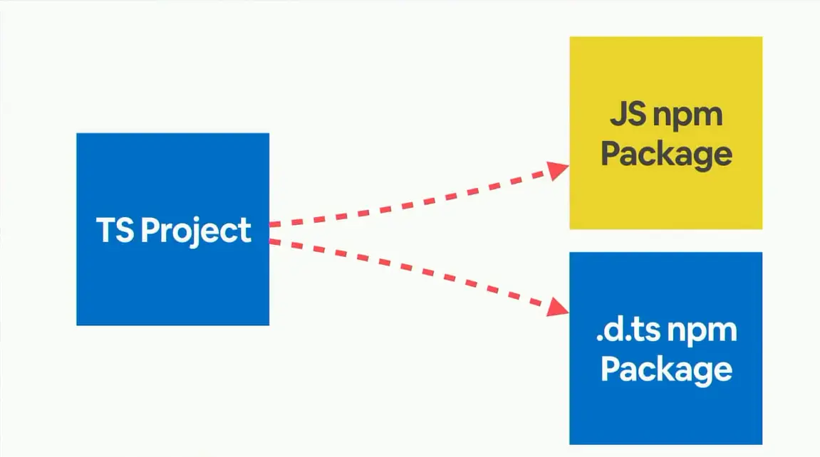 但我们认为这不止一种选择。 相反,我们可以将声明文件放在我们的 TypeScript 项目中。 另一个选择则是我们可以创建一个单独的NPM包,并将所有声明文件放入其中 。 这很棒,因为我们现在可以跨多个仓库共享这些声明文件。