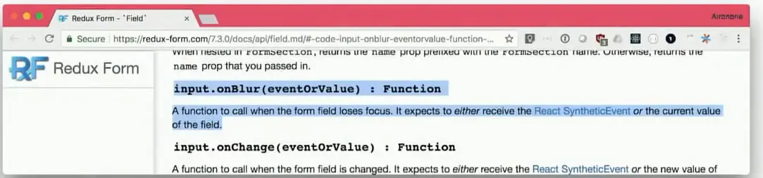 这里 Input 组件作为Redux Form的一部分进行使用,期望得到一个事件或值,以便验证正常工作。