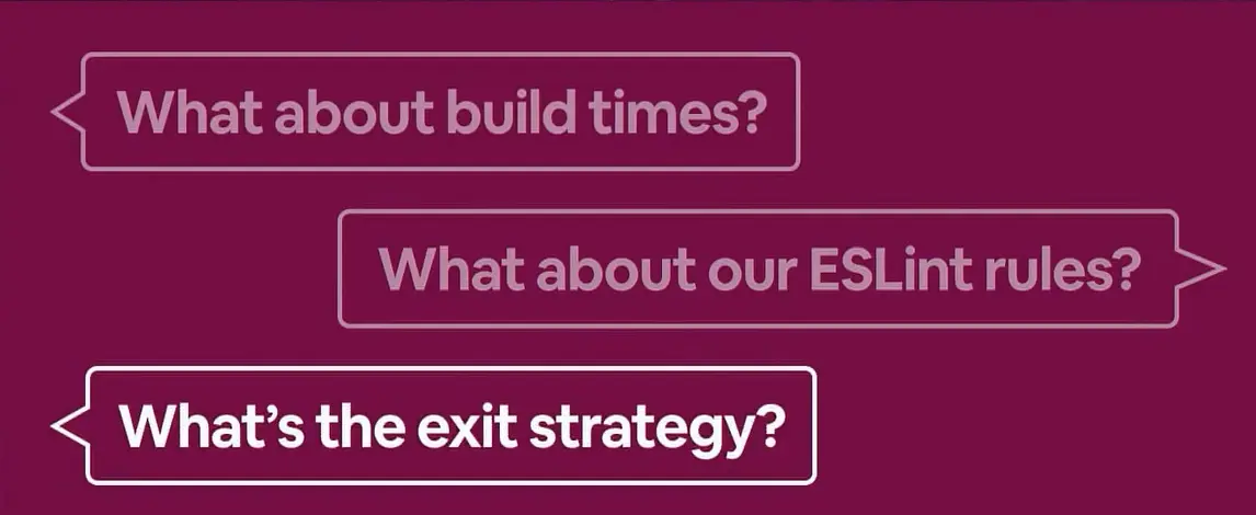 大家会权衡这些提议的利弊, 我们会站在团队的角度去决定向前迈出这步是否有意义。 这确保了我们可以作为一个集思广益的团队,对所做的事情做出深思熟虑的决定,这样可以避免在没有正当技术理由的情况下就“上车”。