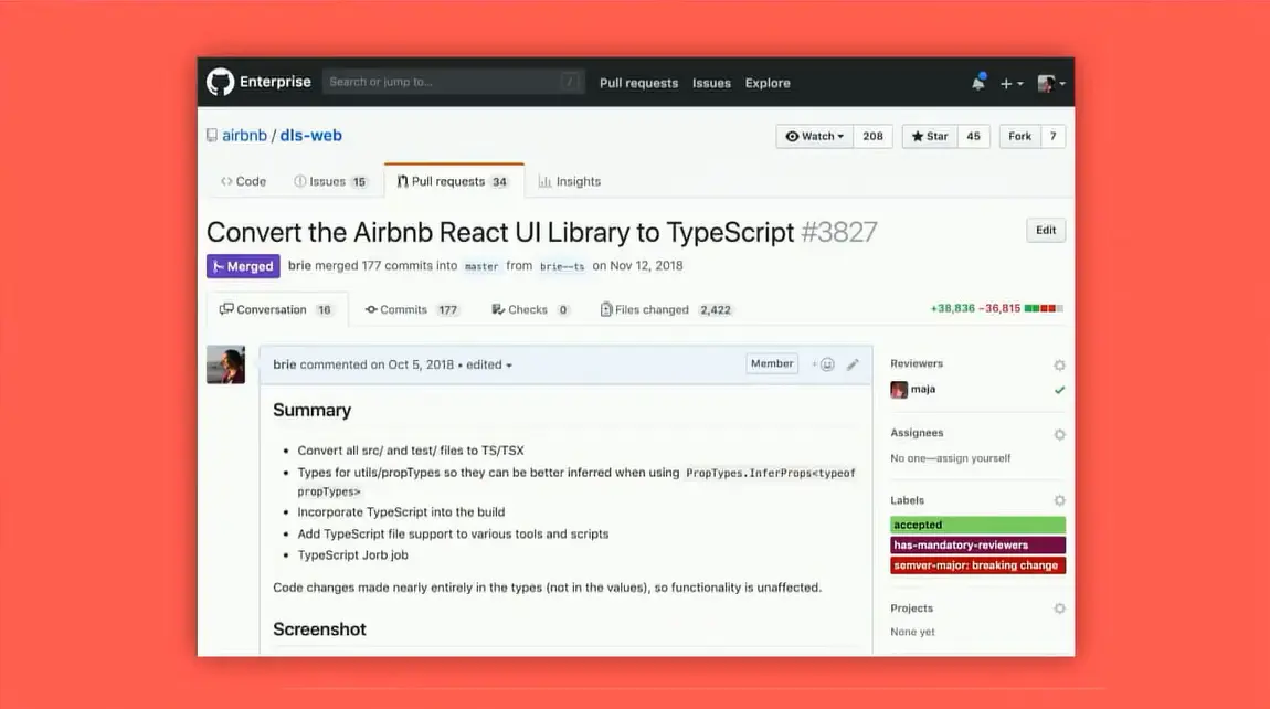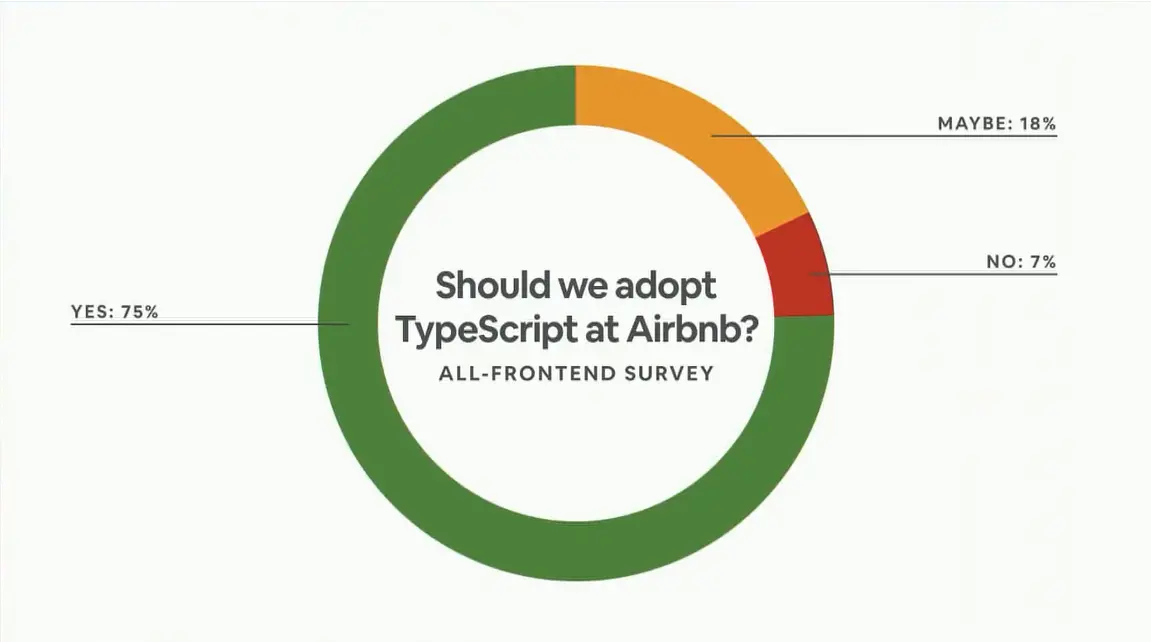 从2016年起,Airbnb 已经在一些小规模团队中探索使用 TypeScript。在2017年的前端调查中,静态类型系统呼声最高。 基于这个信号,Joe(第二排那个Joe)和我起草了一个关于TypeScript的提案,并将它交给前端工作组。 这项提案详细说明了为什么在Airbnb使用TypeScript是有意义的。