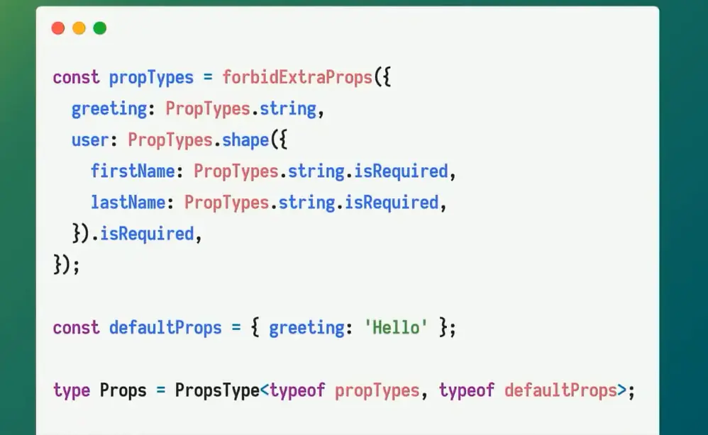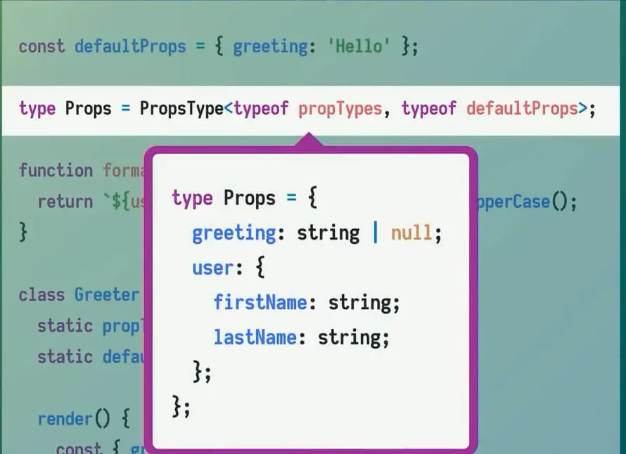 我们创建了一个Props类型,通过它将给定的propTypes和defaultProps来派生出一个TypeScript类型。