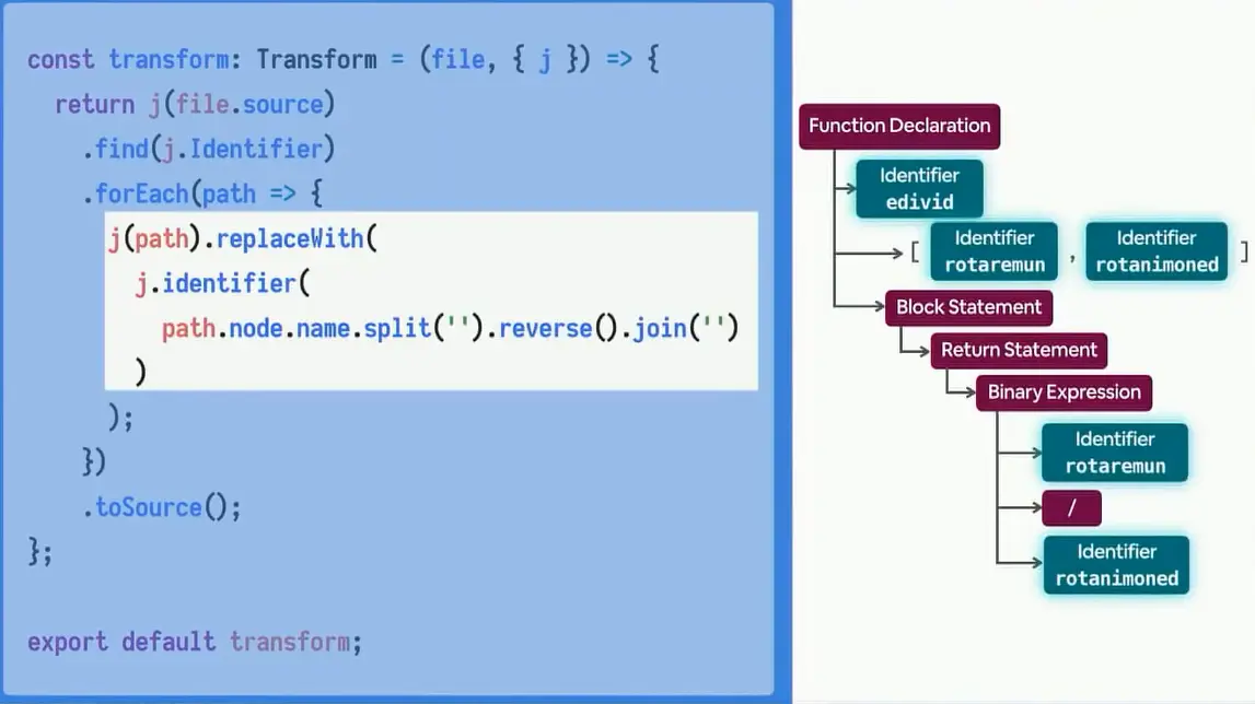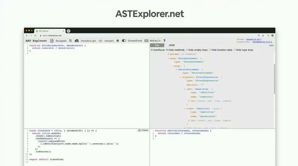 在这个网页下,它有一个可以通过源代码输出对应的AST树的功能,以及在你对代码的改变同时反映到AST树上。 我也在DefinitelyTyped 这个库提交了关于Jscodeshift的pr,这样的话可以来降低大家在使用TypeScript与Codemod的交互门槛,