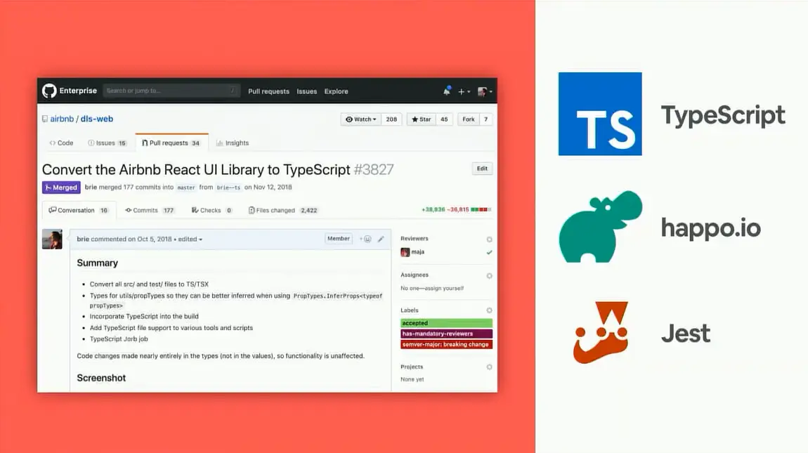 在大公司中进行大的改革很难。这需要去说服很多人,同时又需要涉及大量的代码迁移。我想要与大家分享我们是如何将 TypeScript 应用到 Airbnb这个公司的日常开发中的。我感谢你们能在这里,我知道你们完全可以披着时髦的毛巾在海边娱乐。