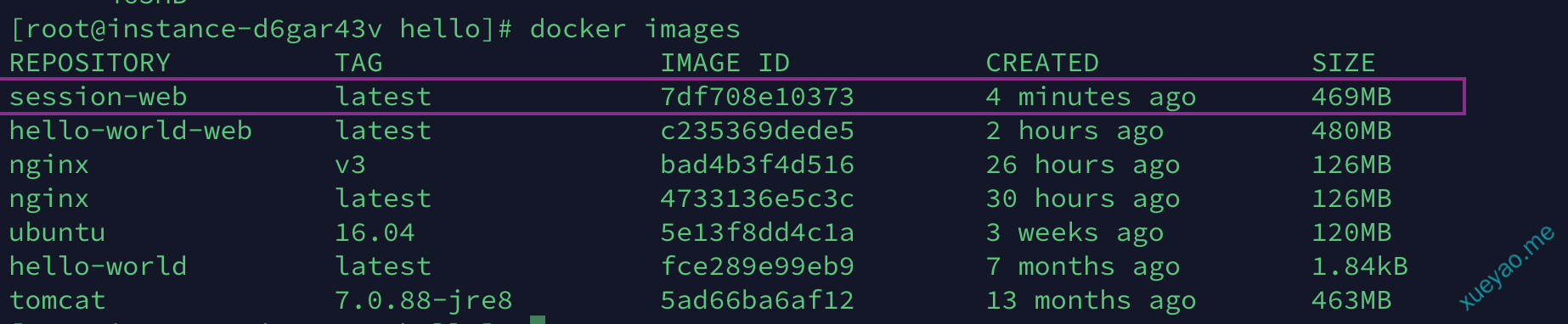 构建成功后使用docker images命令查看本地是否有该镜像
