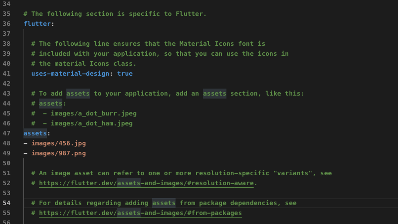 后来终于发现确实问题是出在.yaml文件里,正确的写法应该是assests应该往后缩,跟"uses-material-design: true"对齐!