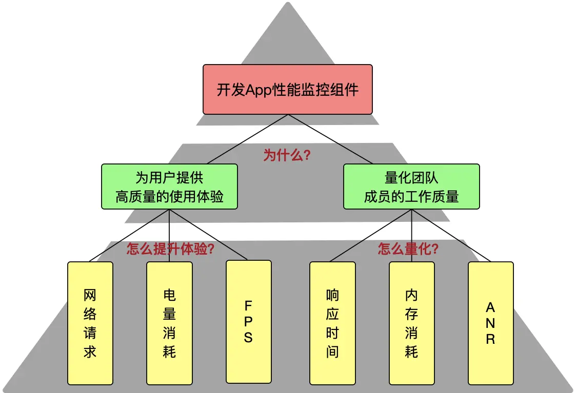 针对「提供高质量的使用体验」这一点:我们需要监控网络请求、App 耗电量、FPS等,发现问题并针对性的优化;