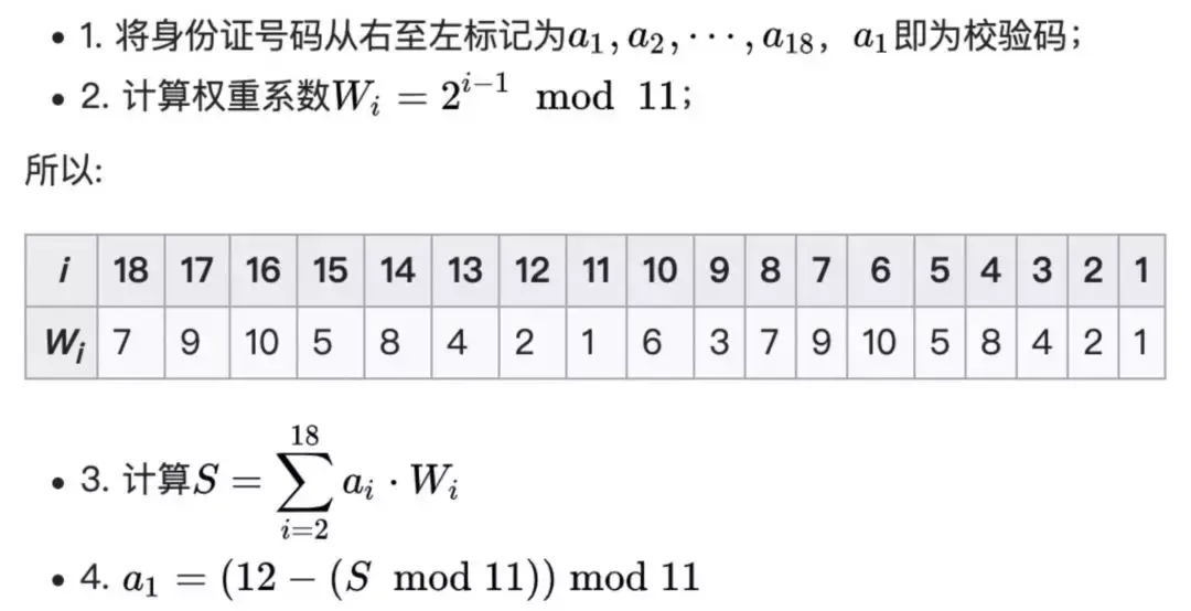 第十八位为0-10(10用罗马数字X代替)的校验码,而且这里的校验码并非随机产生,而是由前十七位来决定的,他的计算公式如下: