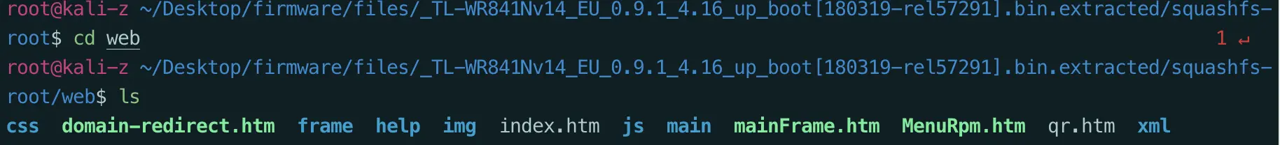 分析完之后可以使用binwalk -e来对固件的各个部分进行提取。提取完成后就可以进入文件系统获取自己想要的信息了,比如我只关注web页面的源码文件,那么就进入squashfs-root/web。