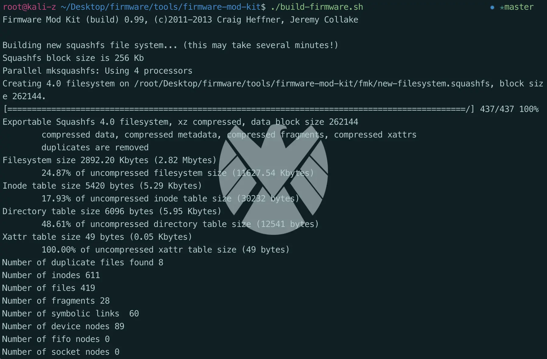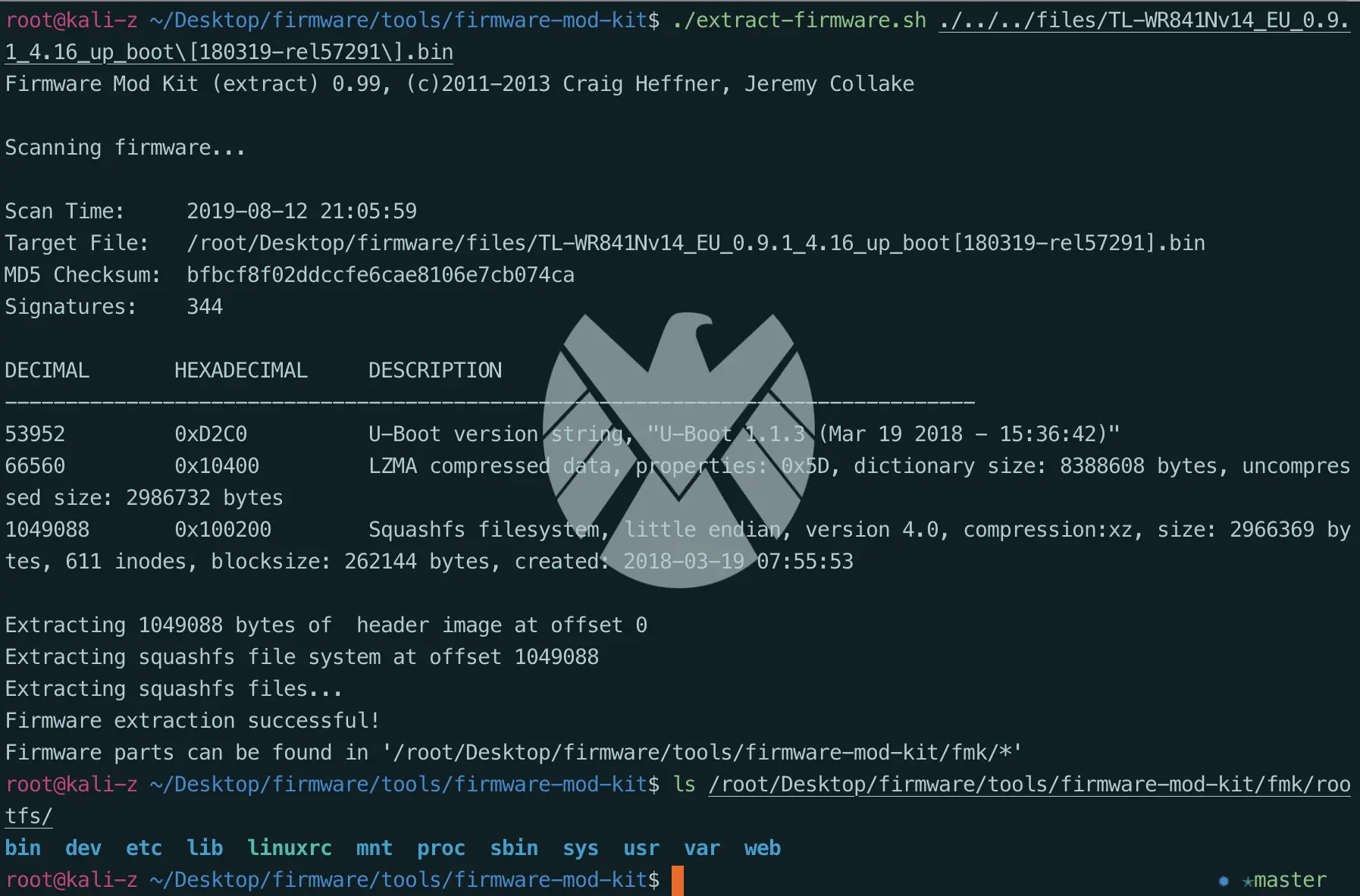 此外,我们还可以使用Google出的firmware-mod-kit来完成对固件的解包和打包,这样我们就可以很方便的在对目标完成修改后重新打包固件(比如植入后门之后重新打包)。