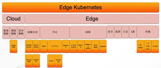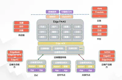 - 第一是能够支持诸多类型的边缘异构计算资源的接入,包括 CDN 领域的资源,ENS(边缘节点服务 Edge Node Service)资源接入;