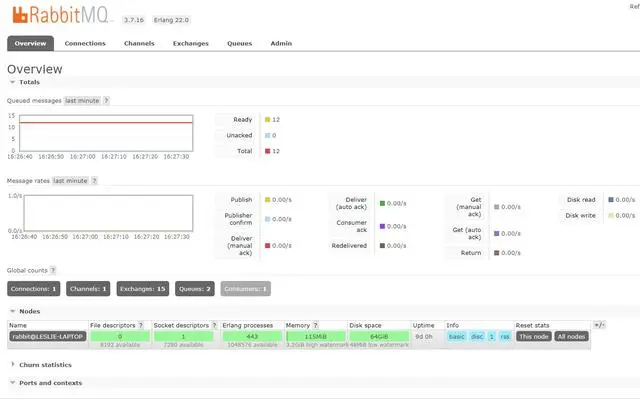 在官网下载并成功安装完 RabbitMQ 后,打开默认路径 http://localhost:15672/#/ 即可看到 RabbitMQ 服务中心的管理界面