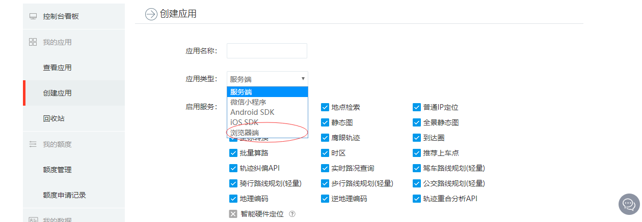 第二步:选择浏览器端(即js端),具体的ak通行的功能可以根据自身需求来选择(注意,没有勾选的功能,生成的ak是不支持调用的)