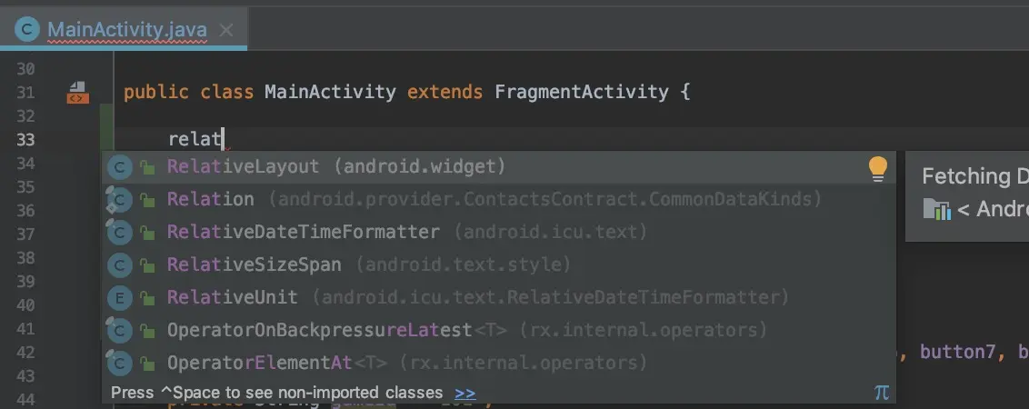 引用某个类或调用哪个方法时,都必须使用具体的大小写字母,才能快速的获取到提示,然后每次都是苦逼的使用 shift+字母 变大写或小写字母,就不能使用小写字母开头也能得到大写字母的提示吗? Android Studio 是提供了的,只是默认限定死了,可以手动打开这个功能的。 先看下具体的提示:
