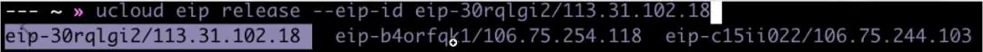 $ ucloud ext uhost switch-eip --create-eip-bandwidth-mb 2 --uhost-id xxx --unband-all --release-all