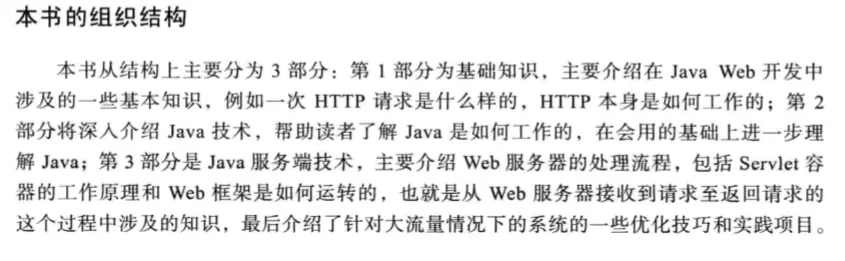 即第一部分是web开发的基础知识,第二部分是Java的核心技术,第三部分是Java服务端的技术。