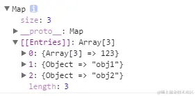 map // Map {[1, 2, 3] => 123, Object {} => "obj1", Object {} => "obj2"}