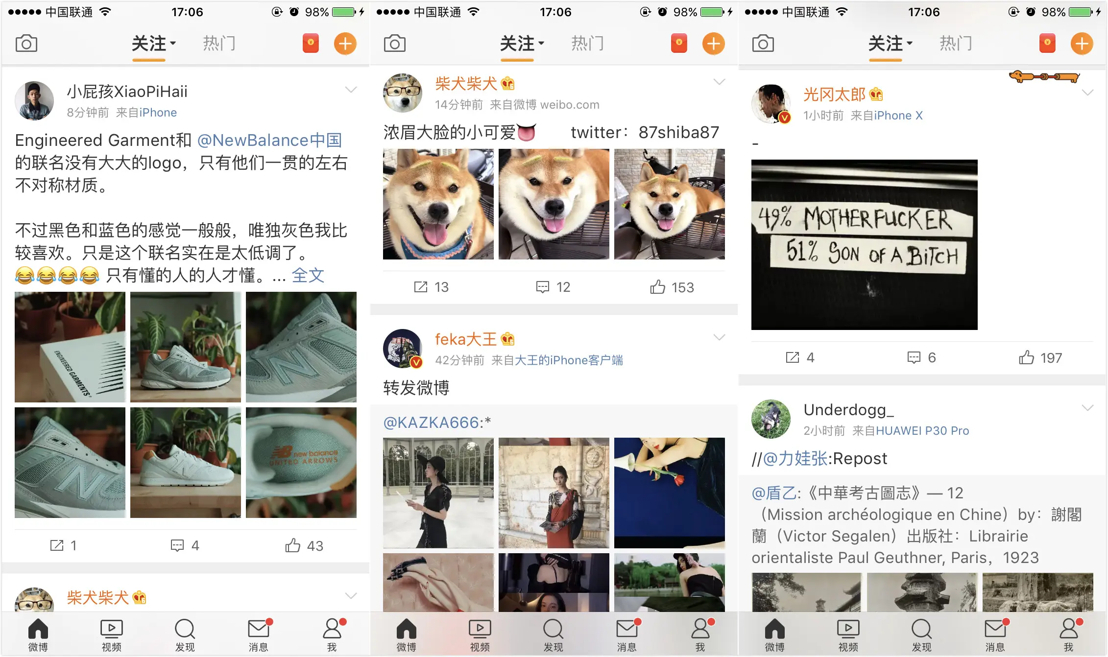 字段:头像、用户名、发布时间、发布设备、微博内容、图片、转发、评论、点赞