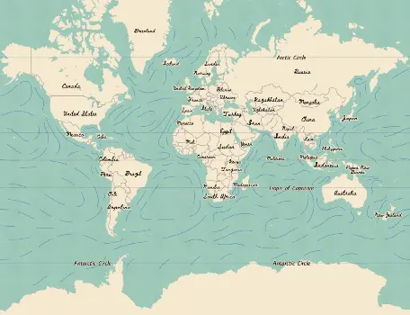 借助洋流,纬度圈以及独特的海洋标记,Treasure 的导航功能性得以体现.