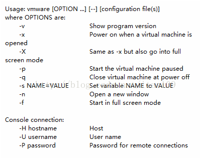 第2个参数: vmware的参数 这里使用的是 -x 当虚拟机系统被打开时启动系统