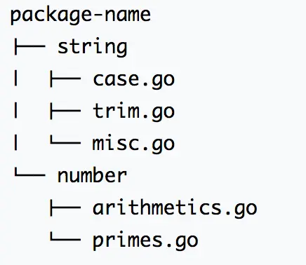 Imagine you have more than a thousand functions which you need constantly while working on any project. Some of these functions have common behavior. For example, toUpperCase and toLowerCase function transforms case of a string, so you write them in a single file (probably case.go). There are other functions which do some other operations on string data type, so you write them in a separate file as well. Since you have many files which do something with string data type, so you created a directory named string and put all string related files into it. Finally, you put all of these directories in one parent directory which will be your package. The whole package structure looks like below. package main