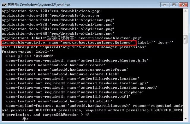 2.这里可以看到,淘宝的launcherActivity值为com.taobao.tao.welcome.Welcome