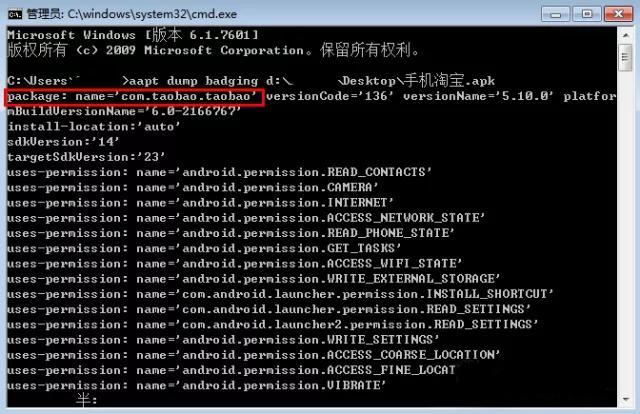 4.这里就可以看到apk的包名:com.taobao.taobao