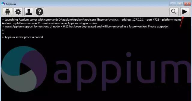 1.启动appium,右上角变成三角形