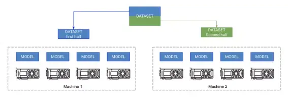 2. 将数据集分成子集。每个GPU只在自己的子集上训练。