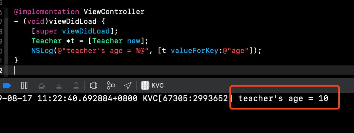 Teacher类中存在一个私有变量age,在Teacher的init方法中设置age=10,照理说这个age外界是无法访问的,这一点也符合面向对象语言的封装特性,但是(永远有个但是,敲黑板了,这里是重点),使用KVC技术,我们可以打破封装特性,代码如下: