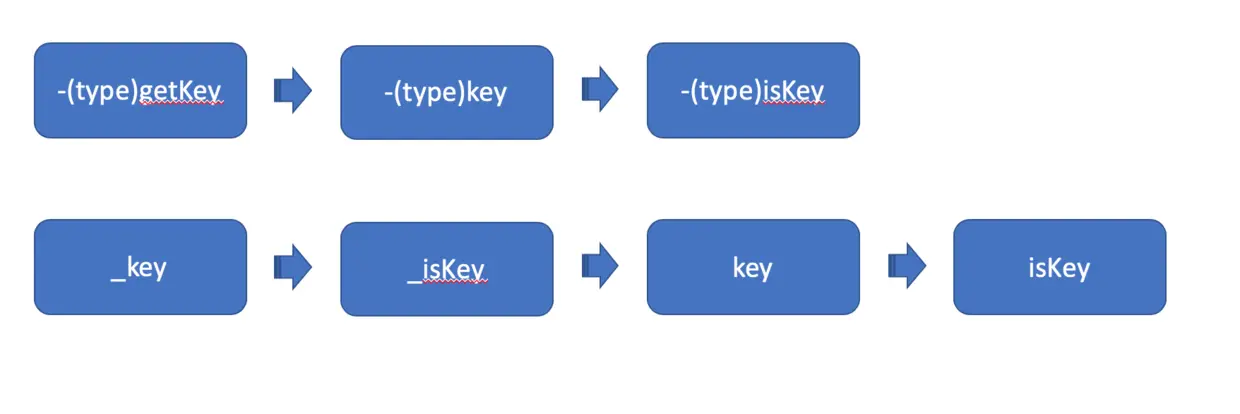 前面的解释里,我多次用了“符合条件”这个词,怎么理解?还是用图说话,KVC会按照下图所示的格式,逐一去寻找对应的方法或者成员变量,感兴趣的可以自己写个demo试试看。