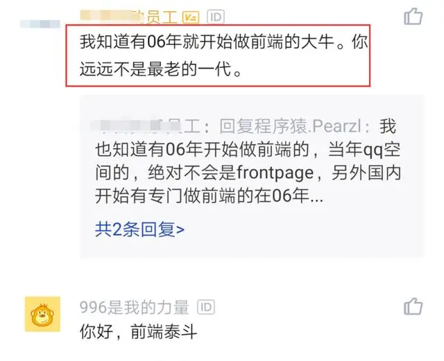 有网友说很多公司就是很死板,不看员工能力,只看他们的工作年限。但也有网友说有个很厉害的员工,从06年就开始做前段了。所以说你还不是最老的一代人,很多国外前段工程师也有很多。