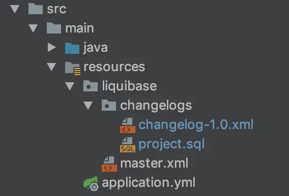 src/main/resources 下新建一个文件夹:liquibase,用来存放跟 liquibase 相关的文件。