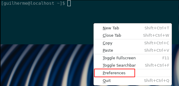 当你第一次运行它时,会出现一个向导来设置首选项。如果需要更改设置,请右键单击终端并转到菜单中的“首选项”。