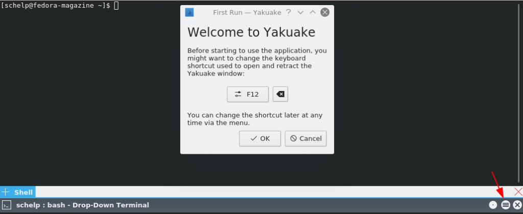 Yakuake 运行时很容易配置,首先在命令行启动该程序: