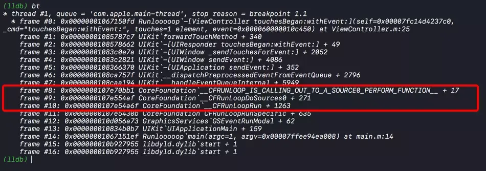 __CFRunLoopDoSources0 内部调用 CFRUNLOOP_IS_CALLING_OUT_TO_A_SOURCE0_PERFORM_FUNCTION