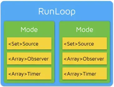 - Mode中有一些Timer 、Source、Observer,这些保证Mode不为空时保证RunLoop没有空转并且是在运行的,当Mode中为空的时候,RunLoop会立刻退出