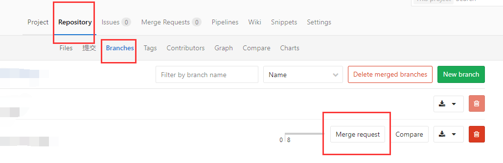 有时候在远程仓库私服上面禁止了所有人的push操作,那合并分支只能在私服页面上进行,