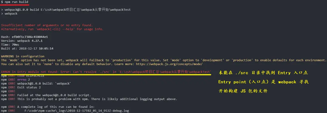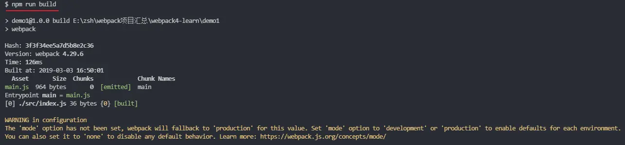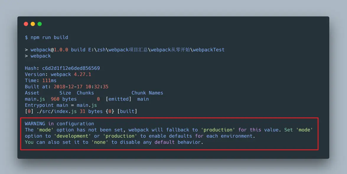 'mode' 选项尚未设置,webpack 将回退到 'production'。 将 “mode” 选项设置为 'development' 或 'production' 以启用每个环境的默认值。您还可以将其设置为 'none' 以禁用任何默认行为。 了解更多