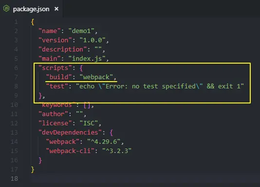 打开 package.json 并填充 script 部分,如下所示: