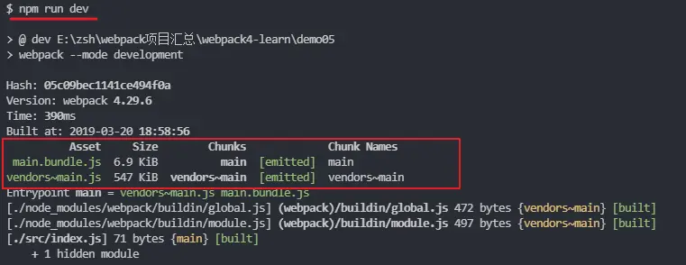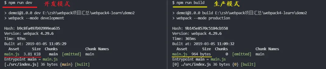 "dev": "webpack --mode development", "build": "webpack --mode production" 复制代码