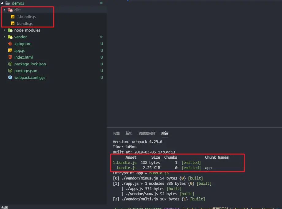 创建 vendor 文件夹,其中 minus.js、multi.js 和 sum.js 分别用 CommonJS、AMD 和 ES6 规范编写