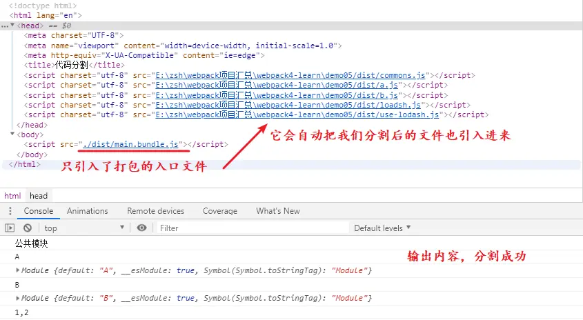 原因是:style-loader, css-loader 两个 loader 的处理后,CSS 代码会转变为 JS,和 index.js 一起打包