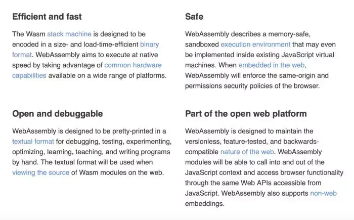 Webassembly(缩写为Wasm)是基于堆栈的虚拟机的二进制指令格式。Wasm被设计为一个可移植的目标,用于编译高级语言如C、C++和RIST。Wasm还支持在Web上部署客户端和服务器应用程序。PWA也可以使用Wasm。