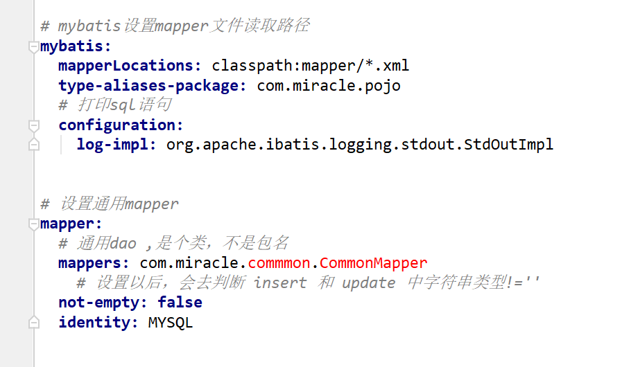 接下来就是springboot的配置文件,配置mybaits和通用mapper,这里我使用的是yml格式