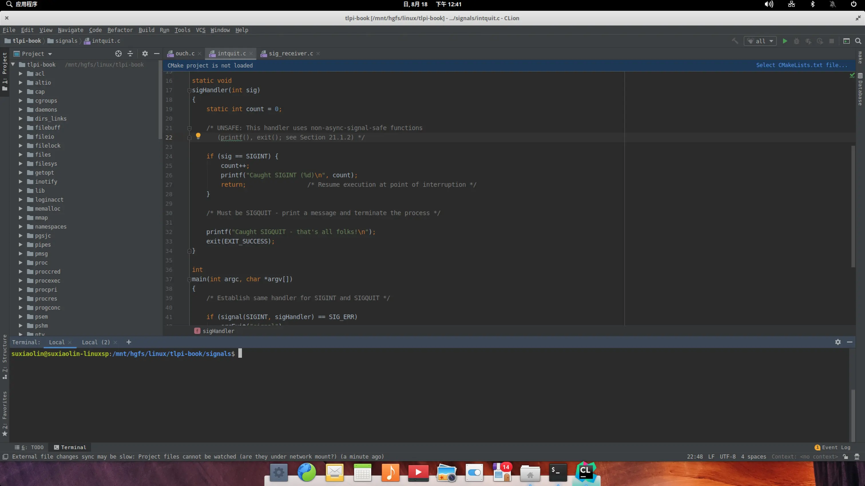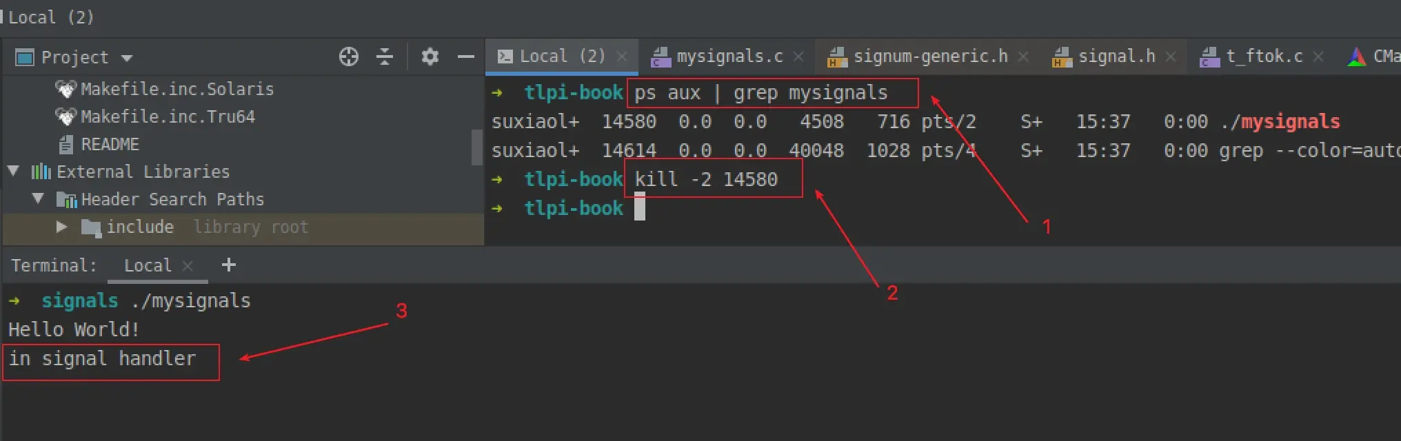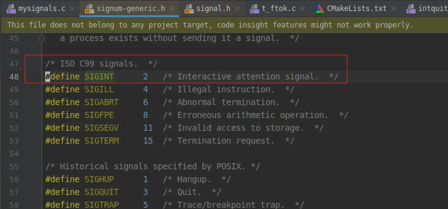 也可以使用kill命令对一个程序发送SIGINT信号,SIGINT常理定义再signum-generic.h头文件中