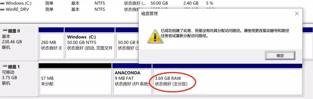 没有分配访问路径,又出现警告“已成功创建了此卷,但是没有向其分配访问路径。请使用更改驱动器号和路径任务尝试重新分配访问路径”。