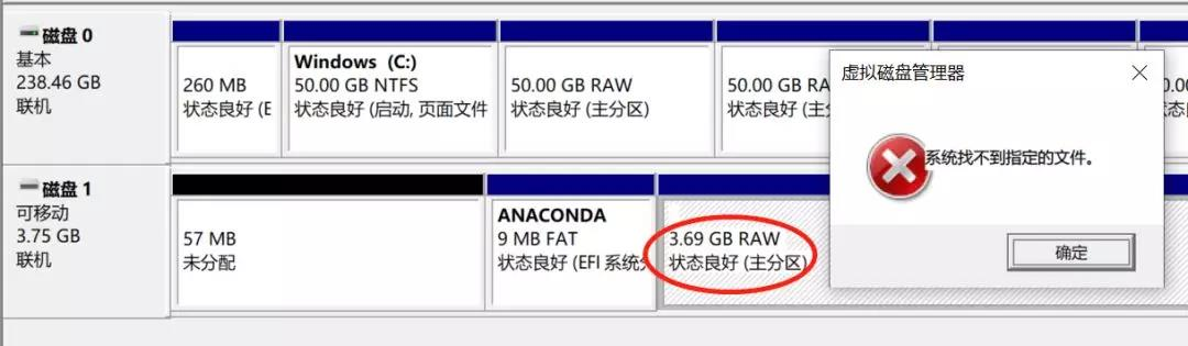 看到U盘的状况(如下图示),想删除ANACONDA,点击右键全部操作项变灰,无法进行。