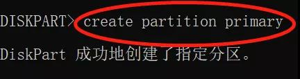 步骤4:输入create partition primary,创建分区。